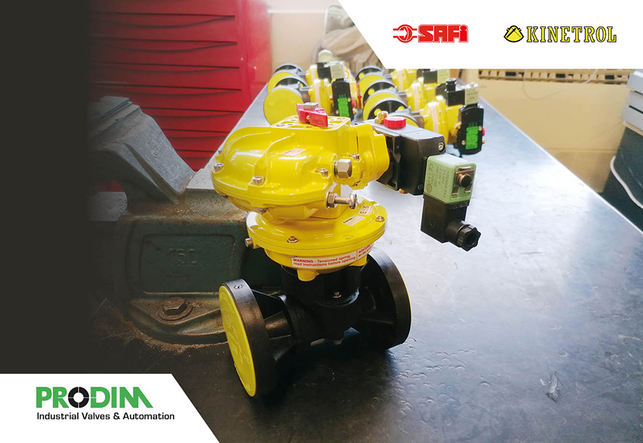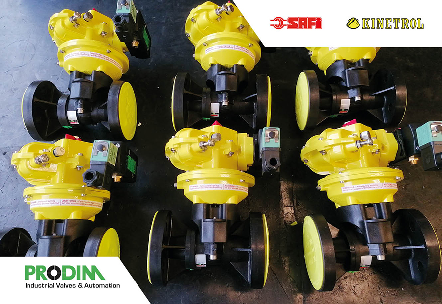 Safi check valve & ball valves 2- & 3-way in PVDF and GRPP with kinetrol pneumatic vane actuators