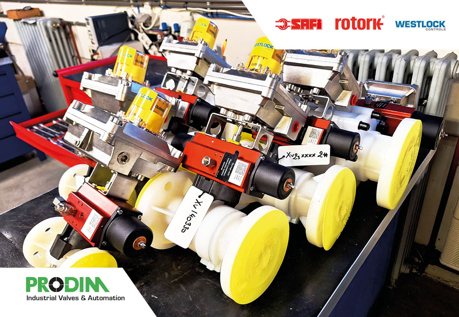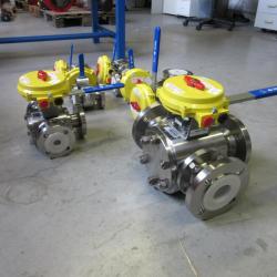 Tailor made assembly for a Belgian polymer producer. SRI ball valves 2"-6" and ROTORK actuators were assembled with Pepperl+Fuchs limit switches and ASCO solenoid valves.
