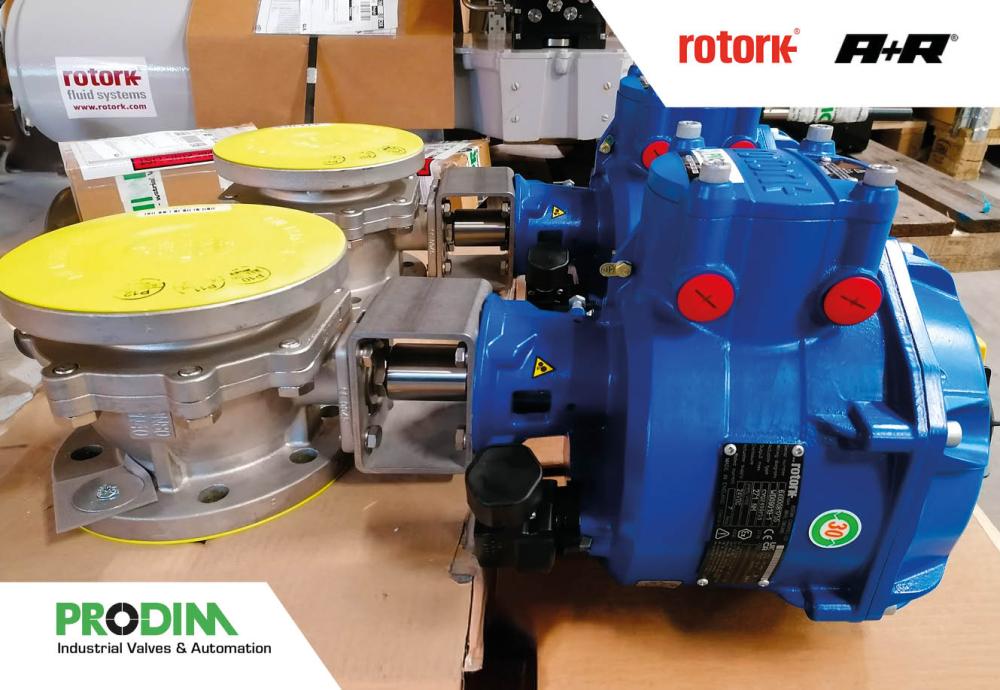 Modulating electric actuators for ATEX zone with electric fail close (or open) option for a biogas production plant. Assembled by Prodim on A+R DN80 stainless steel ball valves.