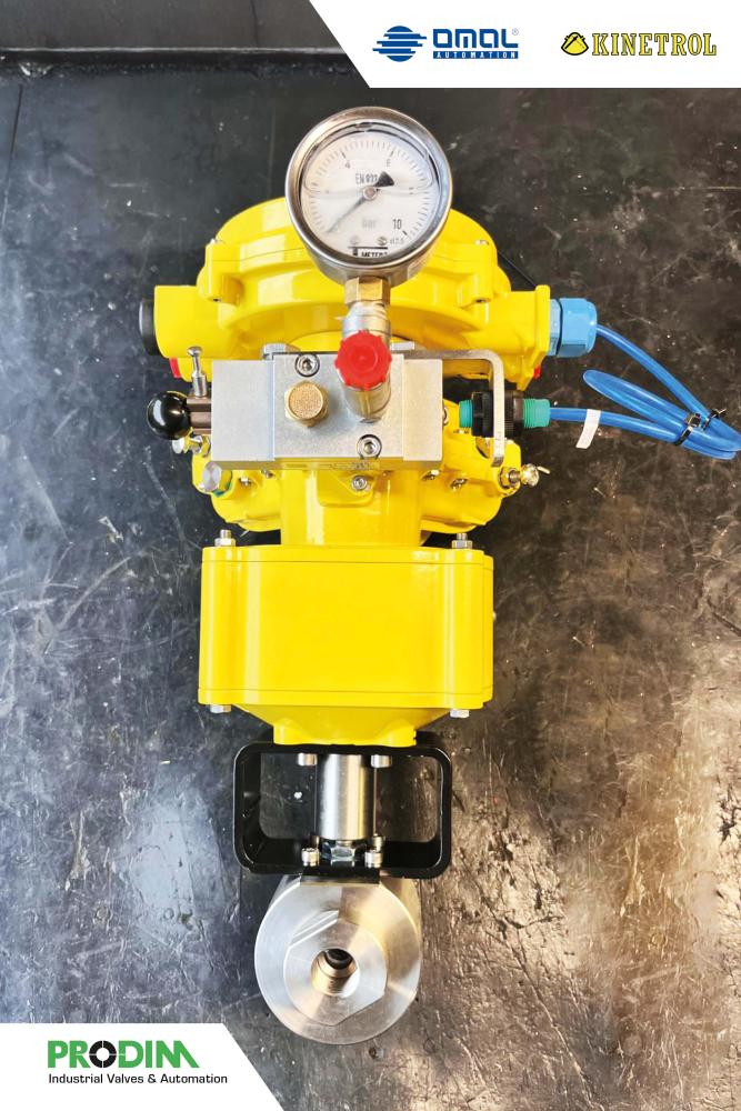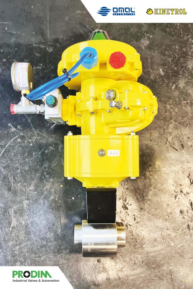 Omal Kratos ball valve paired with a Kinetrol actuator. Omal Kratos is a valve specifically engineered for high-pressure environments and continuous cycling. Here it is complemented by the Kinetrol vane actuator, endure millions of cycles.
