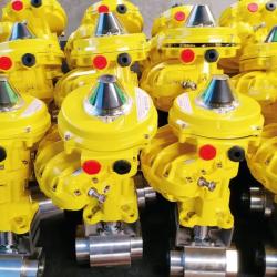 50 ball valves,soft and metal seated, many of them with Kinetrol actuators.Pictured: SRI 8” 600# with KINETROL model 16. The control panel is made by Prodim technicians with Versa and Asco accessories.