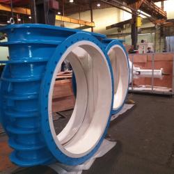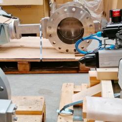 MIV Flanged Gate valves DN 1600 with ROTORK IQ25 actuator and external sensors. 2 pieces produced from foundry through machining, assembly, testing and shipping in only 48 calendar days, including New Years holiday period.