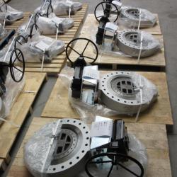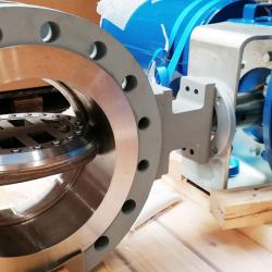 Delivery of 2 pieces 16" ANSI Class 300# RF quadruple offset valves type ETQ in Stainless steel from Quadax mounted with Kinetrol pneumatic single acting actuators type 203-F120 and electro-pneumatic positioner + booster