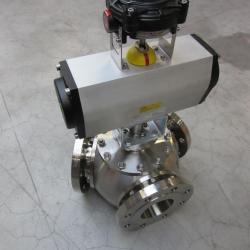 3-way stainless steel ball valve, type B-MW 3L/120, 4" Class 150 RF FB, with pneumatic actuator GT GTW-NM-118X120DA and Soldo SK switchbox