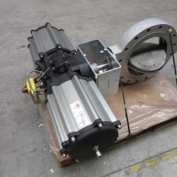 144 pieces of Kinetrol spring return pneumatic actuators (fail open) type 074 with AP electro pneumatic positioner and 2 x V3 microswitches and filter-regulator. These will be mounted on air registers for a project in Russia.