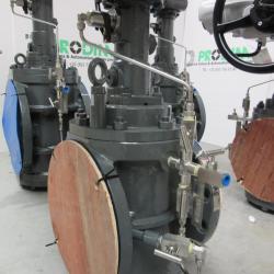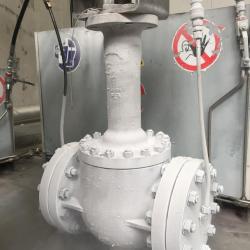Rigau high pressure gate valve completed with bypass and drain valves. These manual 8” and 10” valves, Flanged 900# RTJ - Pressure sealed have been designed and manufactured in France according customer specifications.
