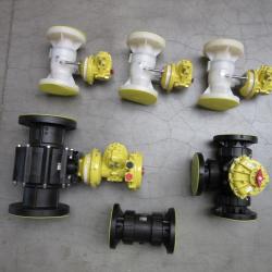 SAFI GRPP ball valves DN80 mounted with REMOTE CONTROL pneumatic single acting actuators with Tufram coating on a sulphuric acid application