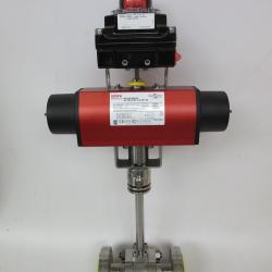 SRI A90RL RK trunnion mounted ball valve 1/2" x 3/4" x 1/2" ANSI Class 1500# RTJ in 316L with cryogenic extention and REMOTE CONTROL pneumatic single acting scotch & yoke actuator RC240-SR035
