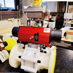 Pictured: a lined ball valve equipped by Prodim Industrial Valves & Automation, ready for safe operation in a chemical plant.